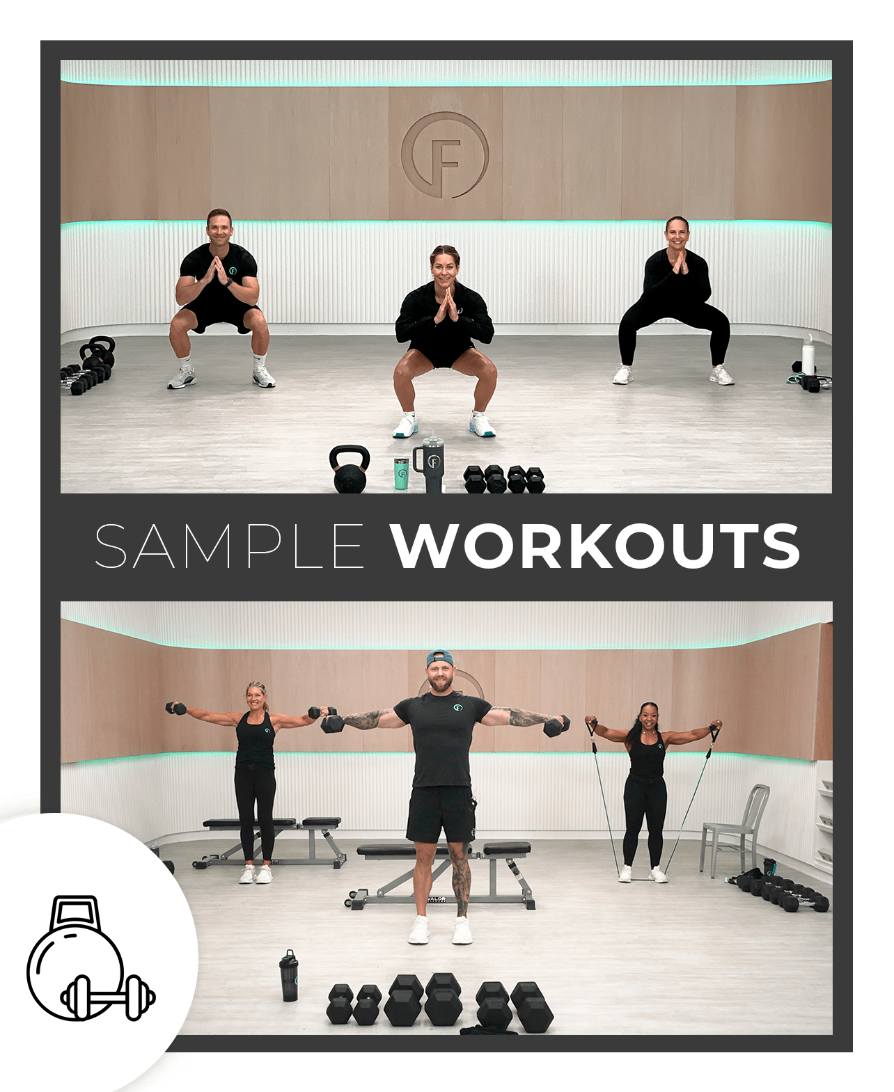 We offer new workouts daily, 365 days a year, that can be completed at home or in the gym with little to no equipment. Clients can use weights, kettlebells, bands, or body resistance for strength training. Workouts are 30 minutes or less and utilize cardio/HIIT (high intensity interval training), strength training, core circuits, ISO stretch, and rest/recovery days throughout the week. Each workout also includes a pro trainer demonstrating a low impact or modified version of the exercise, making it possible for anyone to follow along and see results.